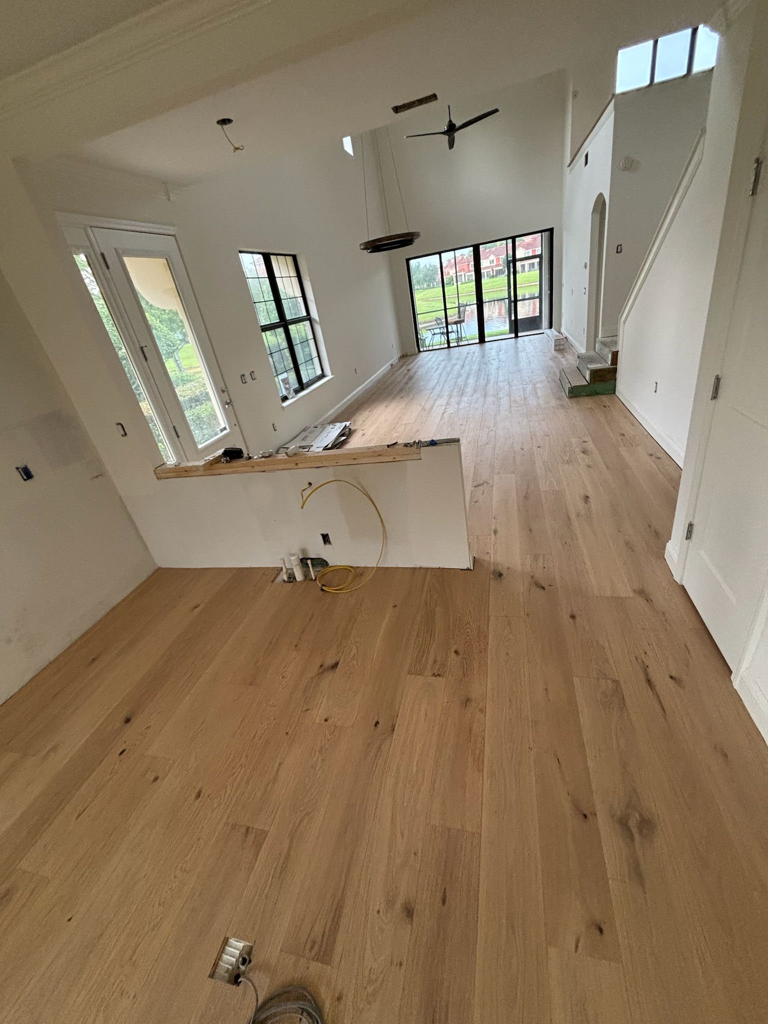 Engineered wood flooring installation by Sunset Hardwood Floors provides a high-performance alternative to solid hardwood, combining the natural beauty of real wood with enhanced stability.